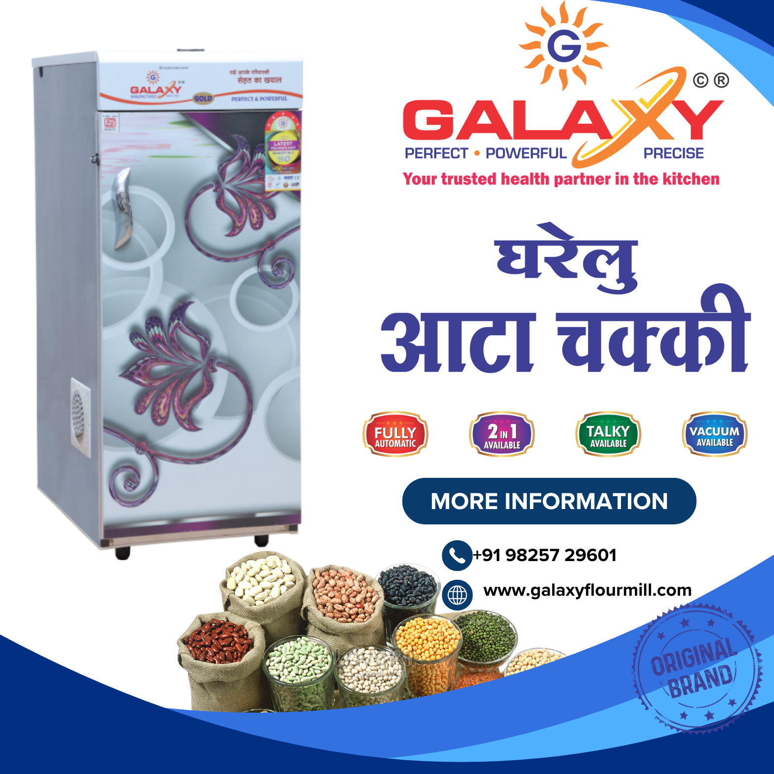 1HP Single Phase Motor โ€“ Powerful and efficient for all your grinding needs. ๐Ÿ”ธ ISI Certified Plywood Cabinet โ€“ Built for durability, ensuring long-lasting performance. ๐Ÿ”ธ H-Laminate Door โ€“ A touch of modern design combined with superior functionality. ๐Ÿ”ธ Steel Covering on Side, Top & Bottom โ€“ Enhanced protection and a sleek look. ๐Ÿ”ธ Copper Winding Motor 2880 RPM โ€“ Ensuring smooth, uninterrupted grinding. ๐Ÿ”ธ 6-8 kg.hr Grinding Capacity โ€“ Perfect for home use or small businesses. ๐Ÿ”ธ E-Class Electric Motor โ€“ Energy-efficient for high performance. ๐Ÿ”ธ Lightweight at 50kg โ€“ Easy to handle yet sturdy for your daily use. Whether you're grinding wheat, bajra, or any other grain, the Galaxy 1HP Gold Model ensures consistent, fine flour with every use. Elevate your kitchen experience with the brand trusted by thousands! Order now and experience the power of Galaxy! ๐Ÿ’ฏ ๐Ÿ“ž For more details, contact: +91 98257 29601 ๐ŸŒ Visit us: www.galaxyflourmill.com #GalaxyFlourMill #GoldModel #SuperiorGrinding #PowerAndPrecision #FlourMillExperts #HomeAppliances #DurableQuality #HealthyLiving #TrustedBrand"