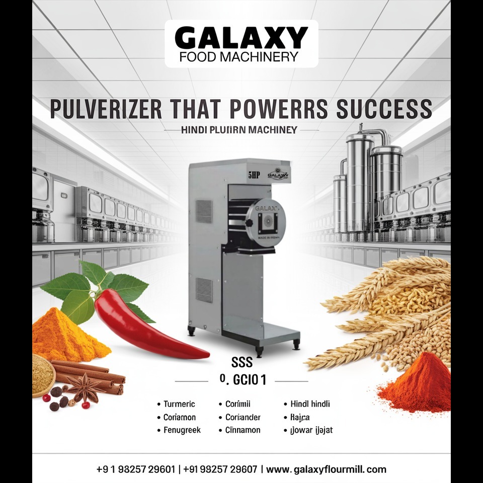 Automatic Pulverizer Plant Ahmedabad | Grain Mill Manufacturer Gujarat | Galaxy Flour Mill manufactures automatic pulverizer plants in Ahmedabad and grain mills across Gujarat. Galaxy provides full food processing solutions with strong motors and efficient design.