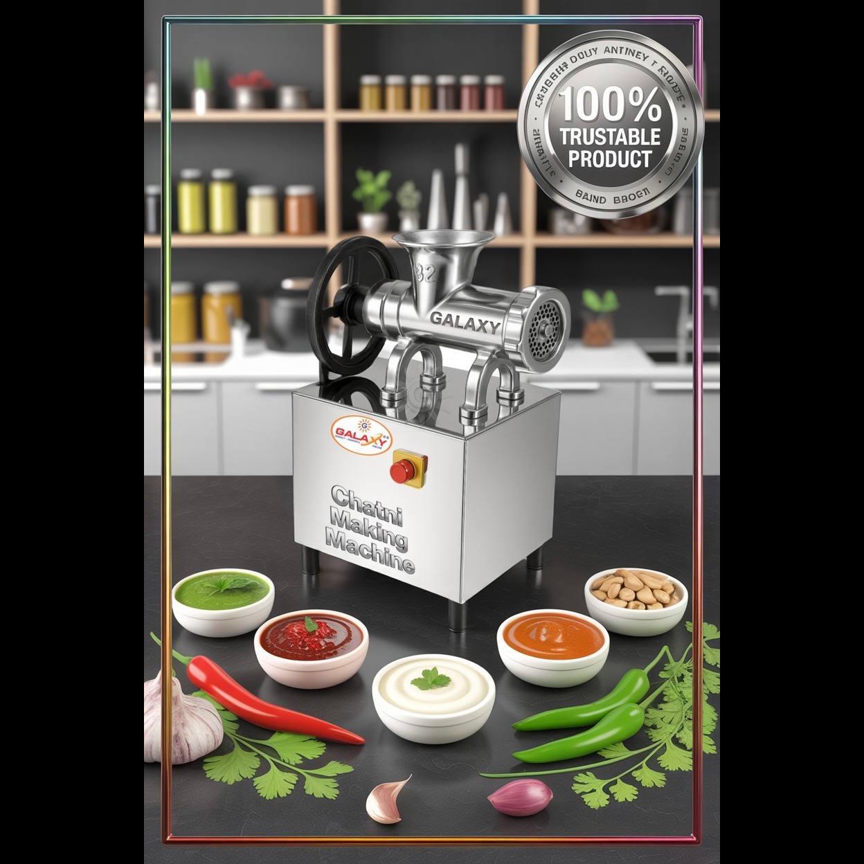 Galaxyβs Chatni Machine with SS Blades is built for hygiene and long life. The sharp stainless-steel blades ensure smooth and fast grinding of coconut, garlic, and peanut chutneys. Ideal for home and commercial kitchens in Delhi.