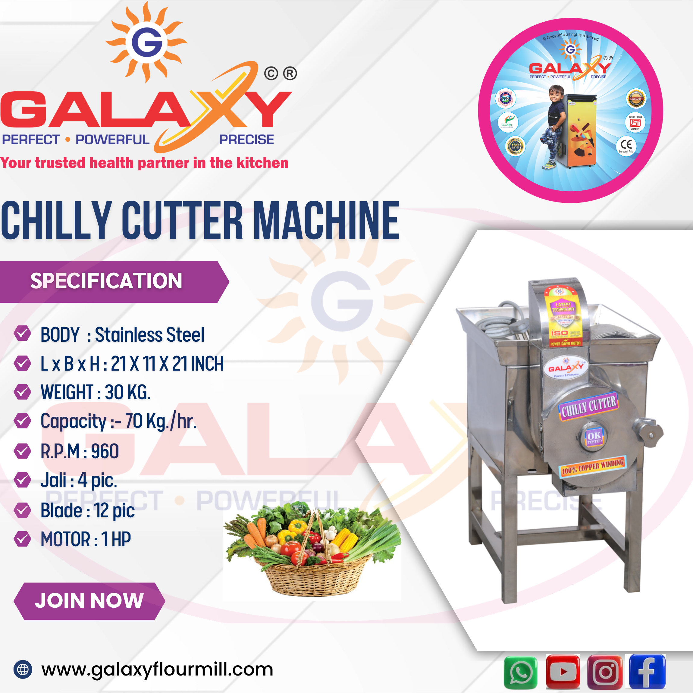 As a reputed Chilly Cutter Machine Manufacturer in Bhopal, Galaxy Flour Mill & Food Machinery provides high-quality machines for domestic and commercial use. Our products are widely used in hotels, restaurants, and canteens across Madhya Pradesh for their durability and efficiency. Built with stainless-steel blades and copper winding motors, our chilly cutters ensure sharp cutting and energy savings. With affordable pricing and nationwide supply, Galaxy is a trusted brand in Bhopal. 📞 Contact us at 98257 29601 | 98257 29607 for the best chilly cutter machines.
