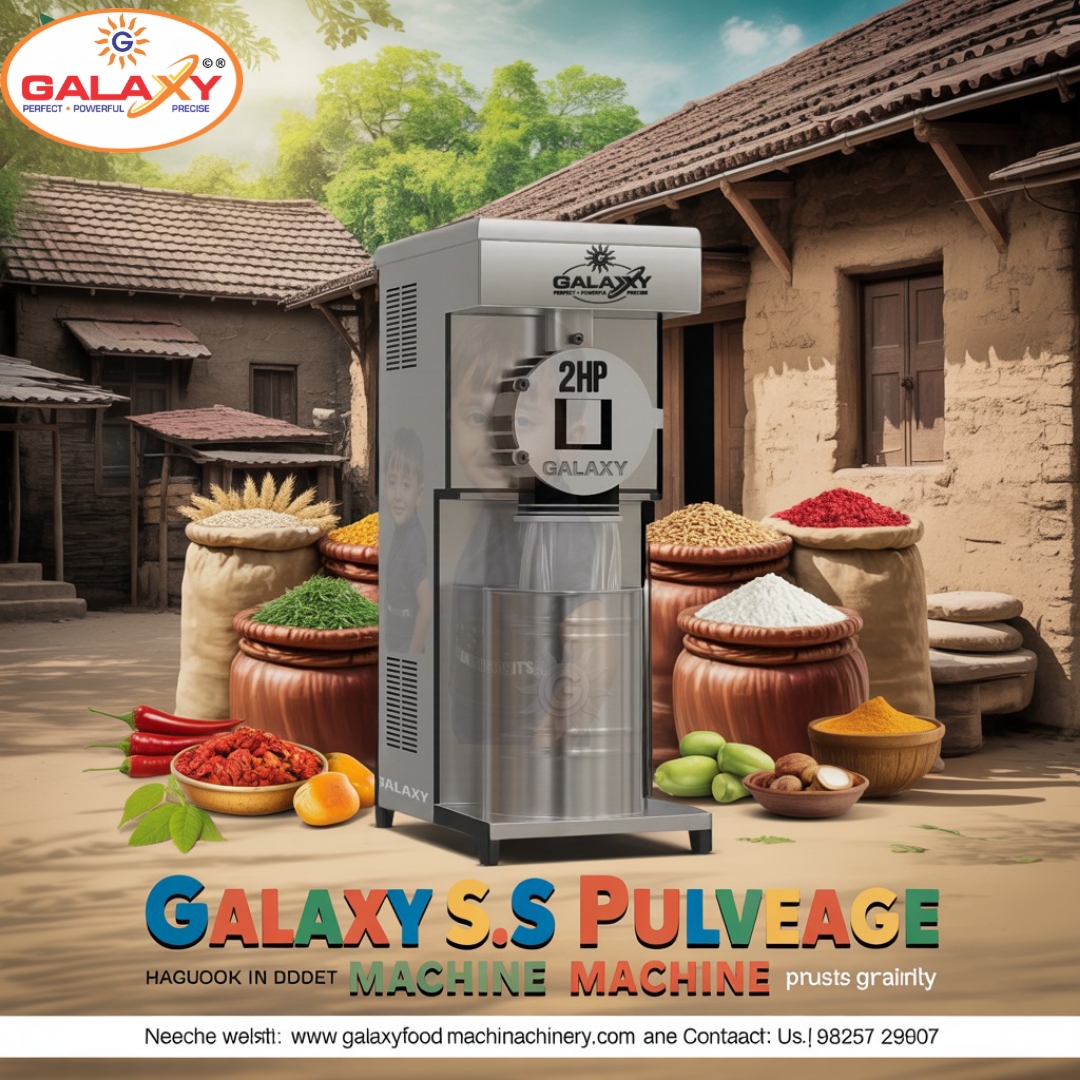 The commercial stainless steel pulverizer machine in Maharashtra from Galaxy Food Machinery grinds spices and grains with hygiene-focused stainless steel material. Our SS masala grinding machine in Maharashtra provides clean, fine powder output.
