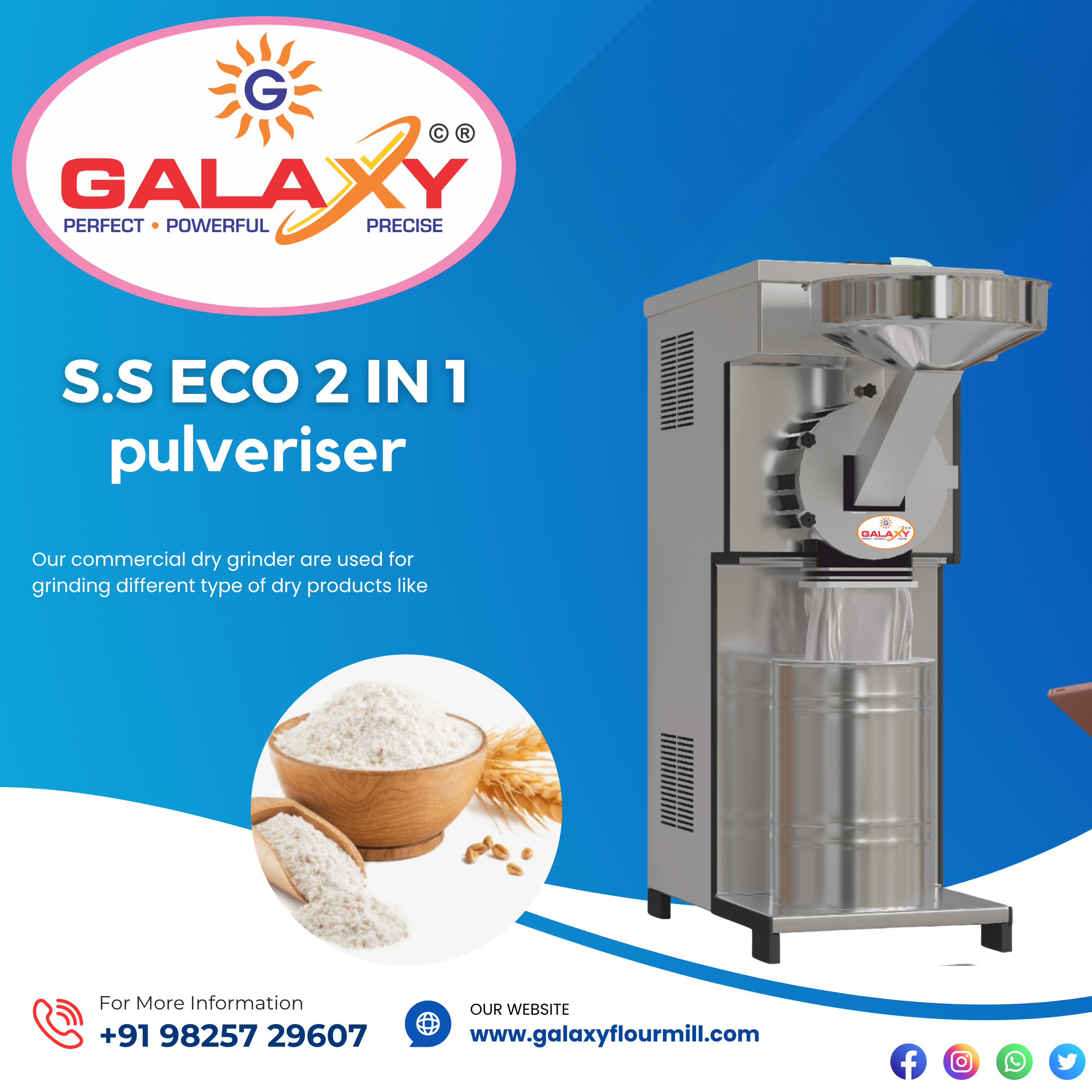 Whether you plan to start a flour mill business or expand your existing production line, Galaxy offers customized solutions, spare parts, and technical support. Our products are trusted across India for their reliability, innovation, and quality performance.