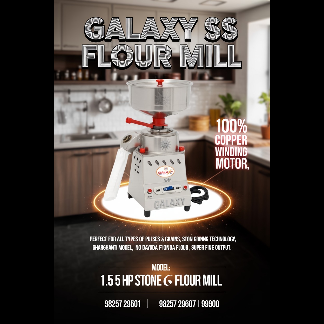 Villupuram-il Galaxy Food Machinery offers flour mill & atta chakki setup – best for small mills & shops. எங்கள் “podi mill” & “maavu machine” power efficient & durable. Tamil Nadu-il Galaxy brand no.1 trusted by food units.