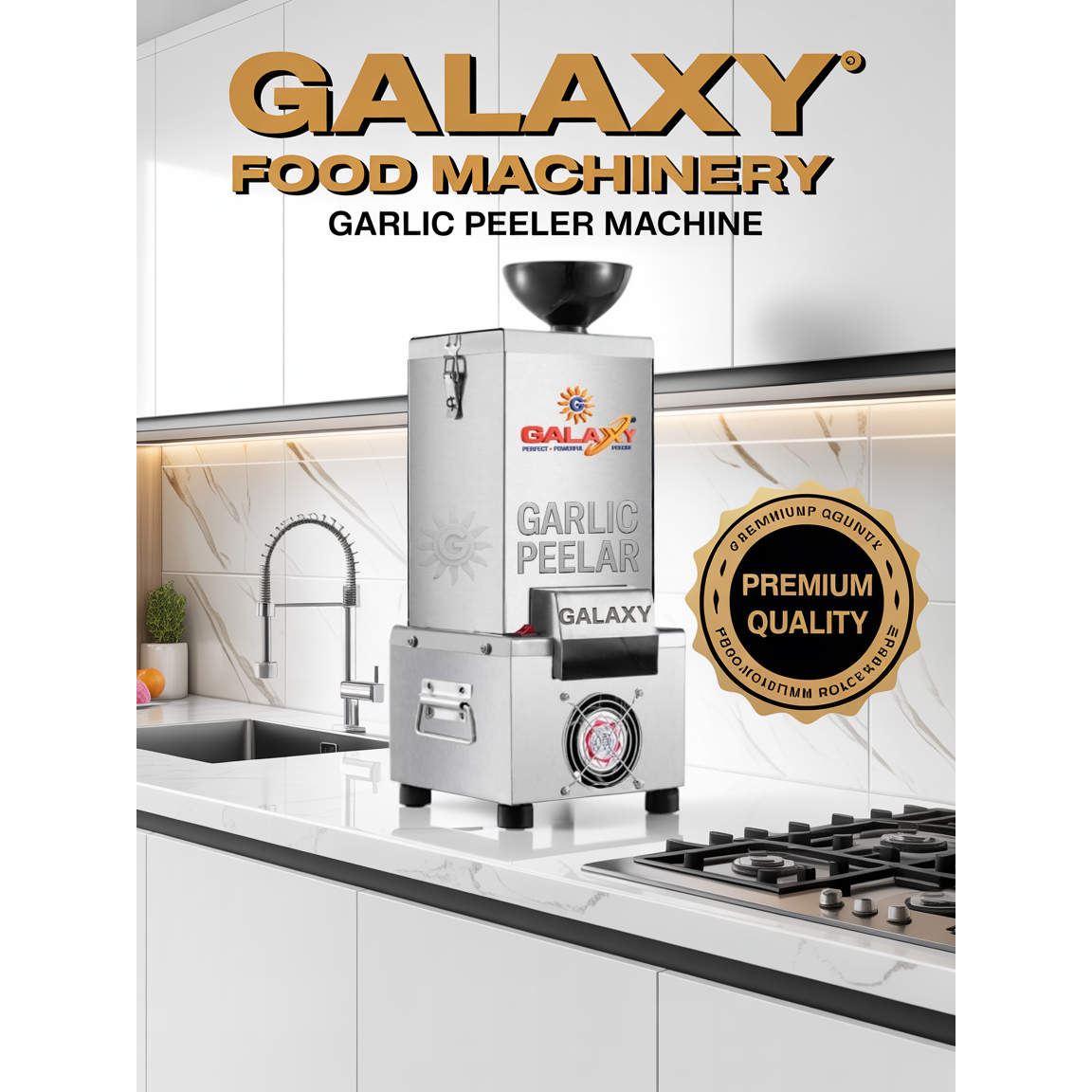 Galaxy Food Machinery provides heavy-duty garlic peeler machines in Ankleshwar, suitable for chemical and food processing industries. Our stainless-steel construction ensures long life, easy maintenance, and hygienic peeling — perfect for continuous production lines in Ankleshwar’s industrial sector.