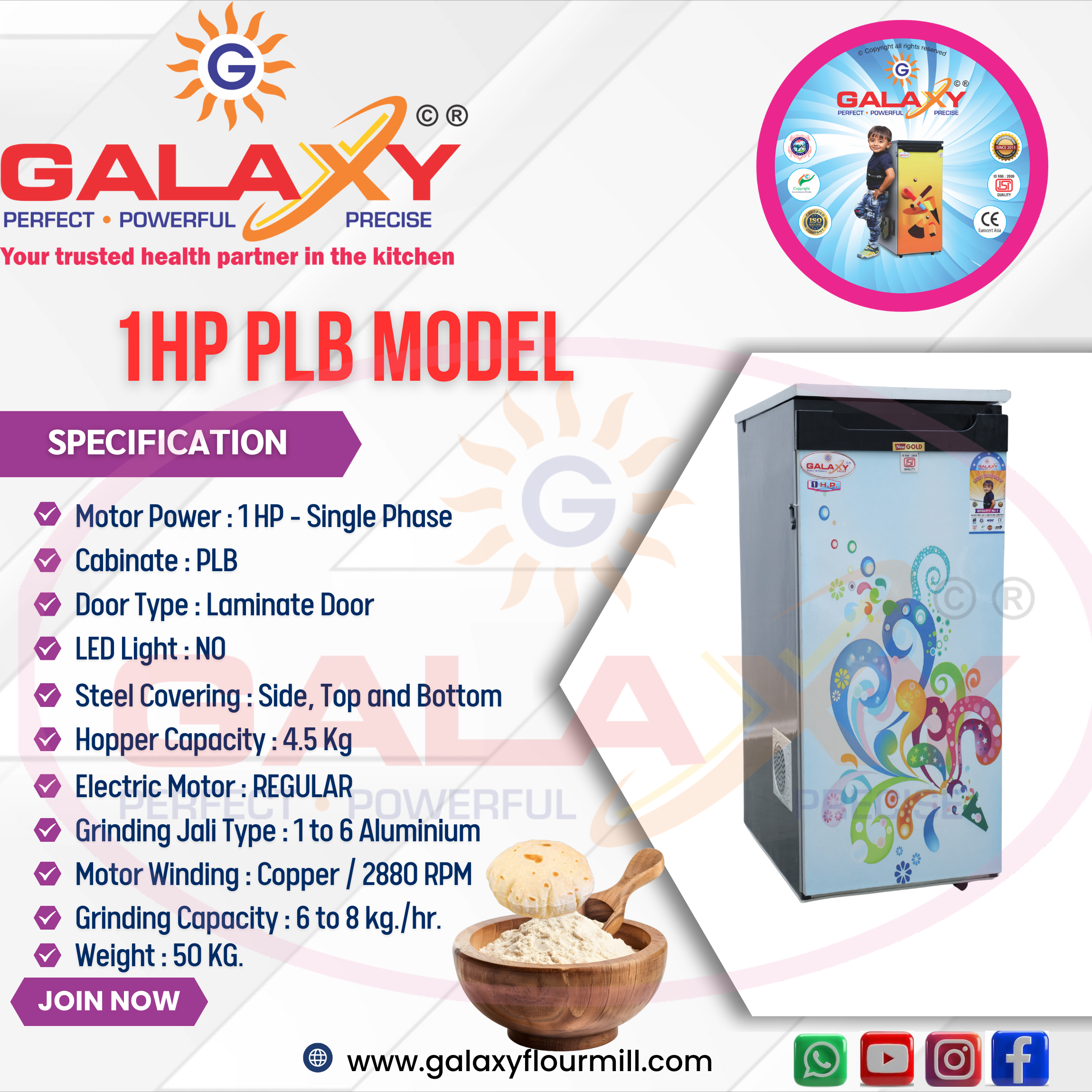 Galaxy provides high-performance ghar ghanti for home use in Ranchi. Known as the best atta chakki in Ranchi, our machines guarantee durability, efficiency, and healthy flour every day.