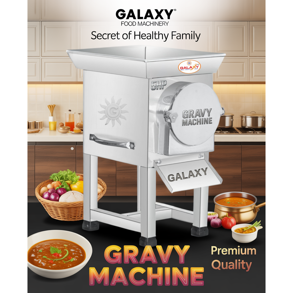 Gravy Pulverizer અને Stainless Gravy Machine હોટેલ અને કૅન્ટીન માટે daily gravy & paste making માટે ઉપયોગી છે. Galaxy Flour Mill & Food Machinery Spare Part Manufacturer in Rajkot છે અને Galaxy Sparepart in Rajkot ready stock માં ઉપલબ્ધ છે.