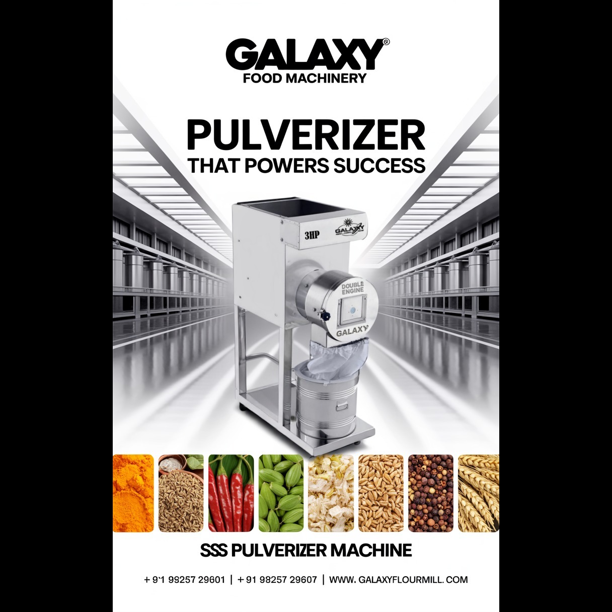 High Speed Pulverizer Ahmedabad | Fine Grinding Machine Gujarat | Galaxy Flour Mill manufactures high-speed pulverizers in Ahmedabad and fine grinding machines across Gujarat. Galaxy ensures smooth running, low vibration, and accurate powder consistency.
