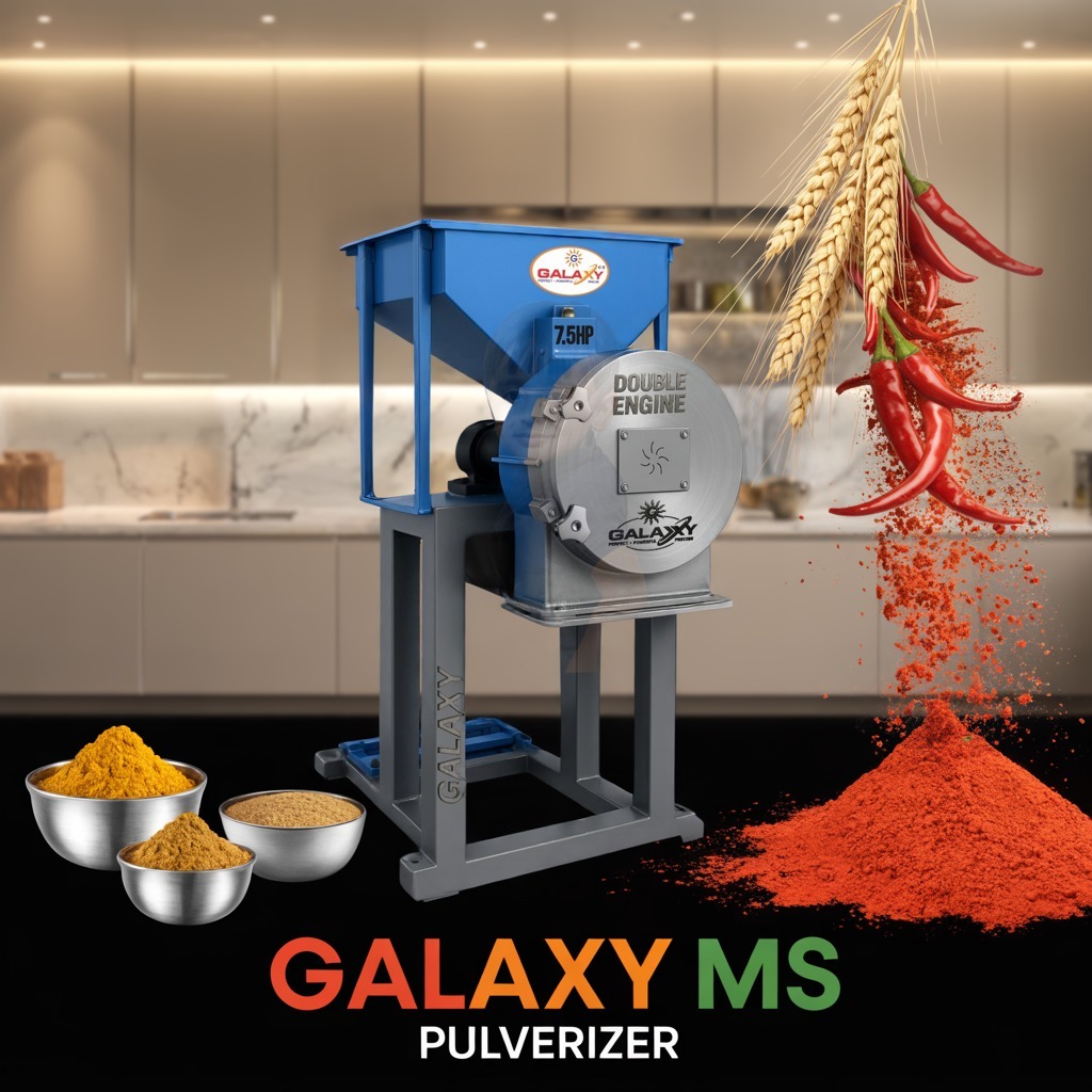 Galaxy Food Machinery supplies Industrial Pulverizer Plant in Hunsur Industrial Area and Double Chamber Flour Mill in Hunsur Industrial Area for large spice industries, bulk flour mills, and food manufacturing units.