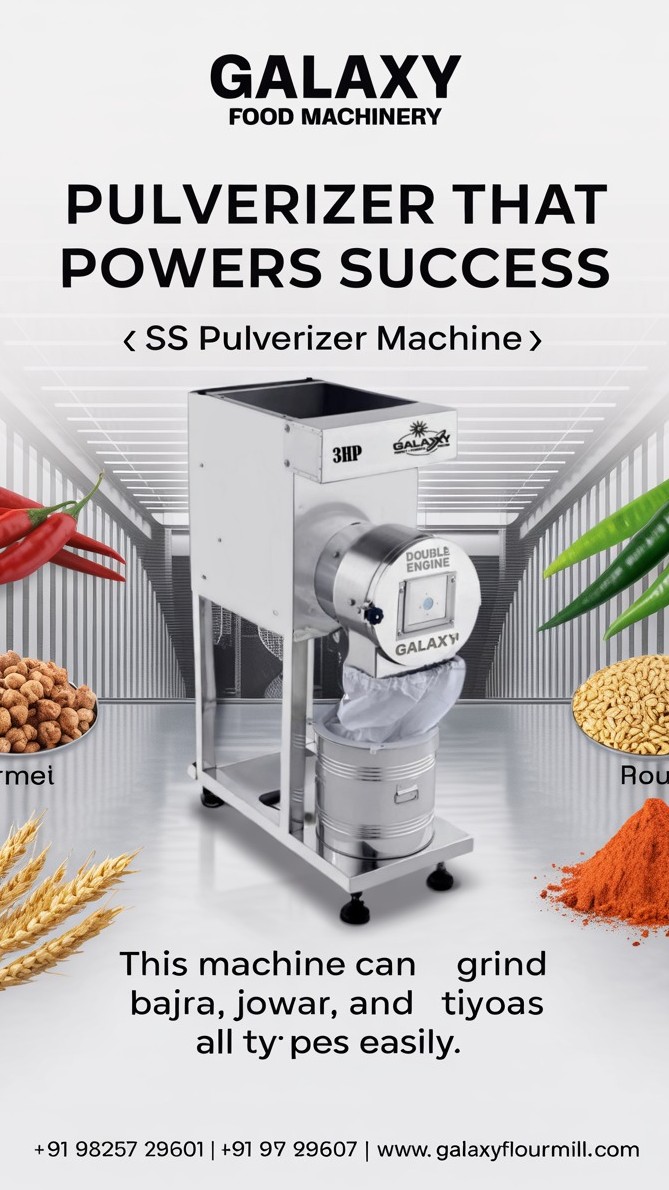 Motihari ke spice business ke liye Spice Pulverizer ek important machine hai. Galaxy Food Machinery ka pulverizer hygienic SS body aur heavy duty motor ke saath आता hai. Haldi, mirchi, jeera aur dhaniya powder banane ke liye yeh machine best hai. Motihari/East Champaran ke bazaar mein hamari machine kaafi demand mein hai.