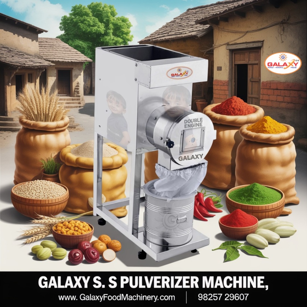 Galaxy Food Machinery in Andhra Pradesh offers high-performance SS 2in1 Pulverizer Machine designed for grinding spices, pulses, grains, and other dry food items. This machine combines two functions in one unit, providing versatility, space savings, and higher productivity.