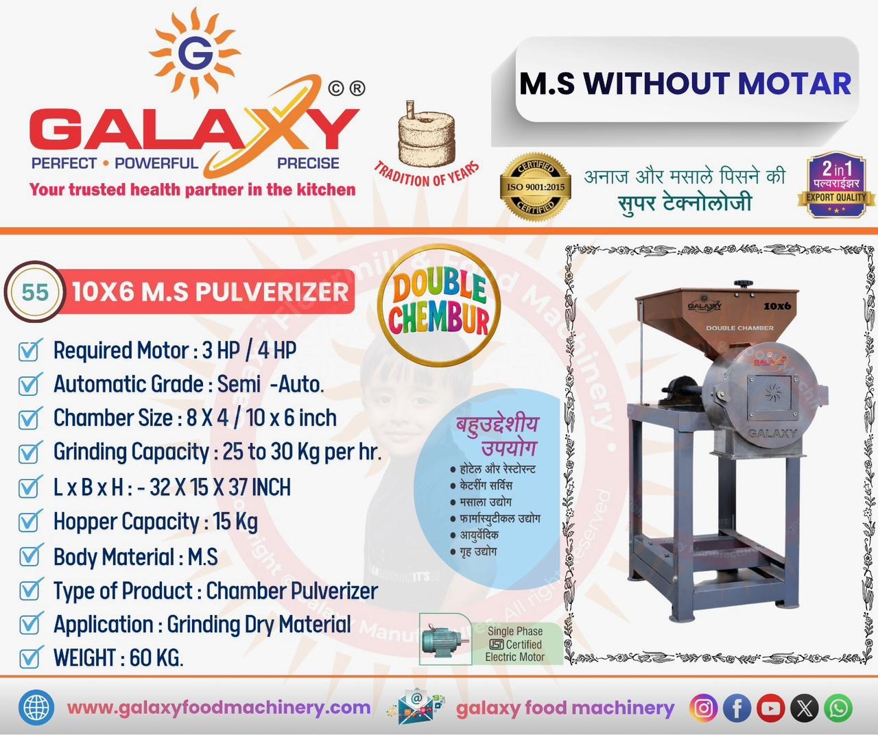 Galaxy Flour Mill & Food Machinery offers an SS Masala Pulverizer Machine in Bhubaneswar designed for hygienic and efficient spice grinding.