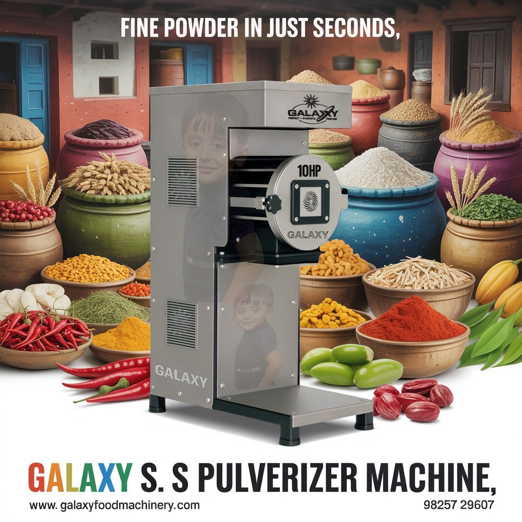 Pulverizer Machine in Tamilnadu hygienic grinding-க்கு essential machinery ஆக உள்ளது. Dindigul food processing units மற்றும் spice manufacturers-க்கு SS Pulverizer Machine Dindigul அதிகமாக பயன்படுத்தப்படுகிறது.