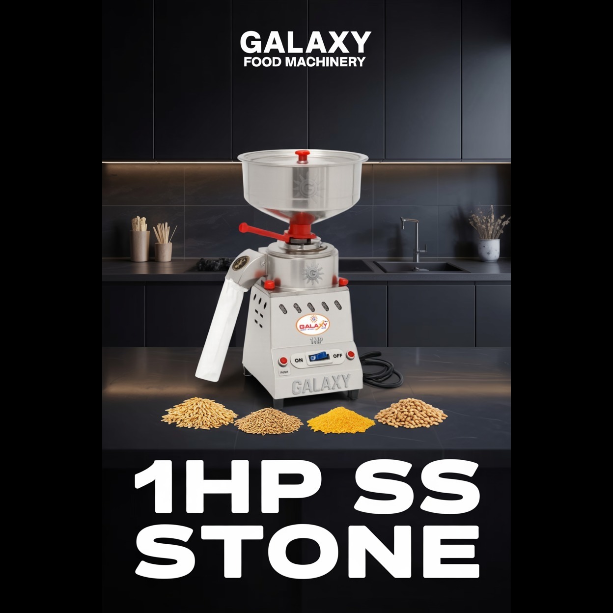 Sangaria ke customers ke liye atta aur dal pisne ke liye GALAXY SS Stone Flour Mill ek trusted brand hai. Stainless steel aur copper wiring ki wajah se ye high performance deti hai.