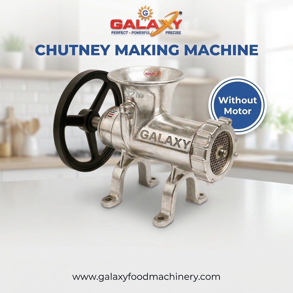 The Commercial Chatney Making Machine by Galaxy Flour Mill & Food Machinery is specially designed for efficient and hygienic grinding of chutney, spices, and various food ingredients in commercial environments. This machine delivers smooth and consistent grinding performance, making it an ideal solution for restaurants, hotels, catering services, food processing units, and commercial kitchens. Its strong stainless steel construction ensures durability and long service life, while the compact design allows easy installation in limited spaces. The machine helps reduce manual effort, save preparation time, and maintain uniform product quality. Whether you are producing green chutney, garlic paste, ginger paste, or masala mixtures, this machine supports continuous operation and reliable performance for daily business needs. The Chatney Making Machine from Galaxy Flour Mill & Food Machinery is a dependable choice for businesses looking to increase productivity, maintain hygiene standards, and achieve consistent grinding results in their food production process. Applications : • Hotels and Restaurants • Catering Services • Commercial Kitchens • Food Processing Units • Spice Grinding Businesses • Chutney and Sauce Manufacturing Units • Cloud Kitchens and Central Kitchens Usage : Prepare Ingredients : Cut vegetables, herbs, or spices into small pieces Load Material : Put the ingredients into the machine hopper Start Machine : Switch on the machine to begin grinding Collect Output : Collect the smooth chutney or paste from the outlet Adjust Texture : Use suitable jali for desired grinding consistency Clean Machine : Clean thoroughly after use to maintain hygiene and long machine life
